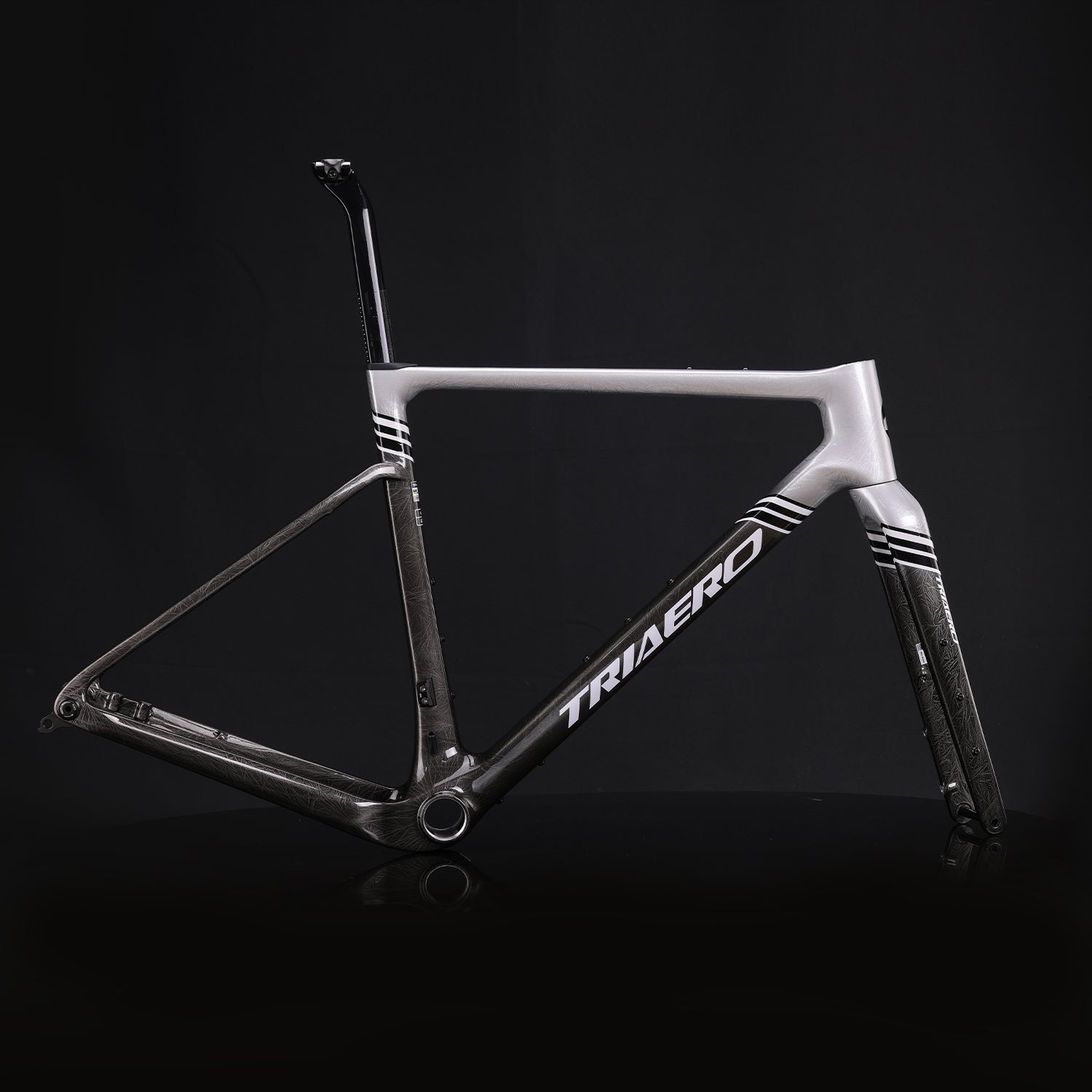 El cuadro de bicicleta gravel Graro revoluciona el concepto de aerodinámica en el ciclismo todoterreno. Utilizando principios de diseño aerodinámico avanzados, la bicicleta presenta tubos principales cuidadosamente moldeados (tubo diagonal, tubo de dirección, tubo de sillín, tija de sillín y tirantes), todos diseñados para minimizar la resistencia. Este diseño estratégico tiene como objetivo optimizar el flujo de aire y reducir la resistencia, mejorando la velocidad y el rendimiento generales.